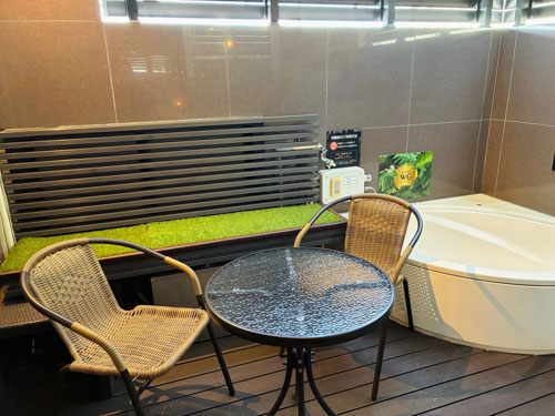 露天風呂、カラオケ、マッサージチェア付きのパーティールームになります。